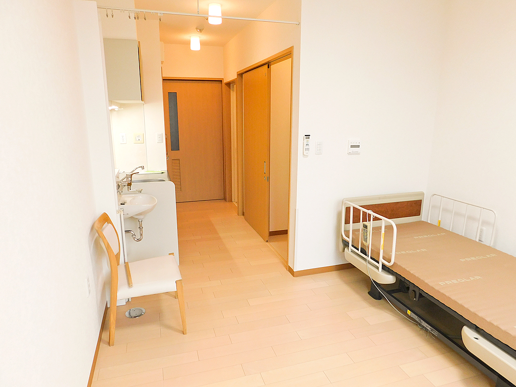 | 料金 | 家賃 月額:30,000円(敷金、礼金なし) 公益費 8,560円 水道代 2,500円(固定料金) 光熱費 3,000円~10,000円食 費 40,500円(税込) (朝 378円・昼 486円・夜 486円 計 1,350円) 生活サポート費 6,600円 合計 91,160円=98,160円介護サービス費 7,000円~20,000円前後 |